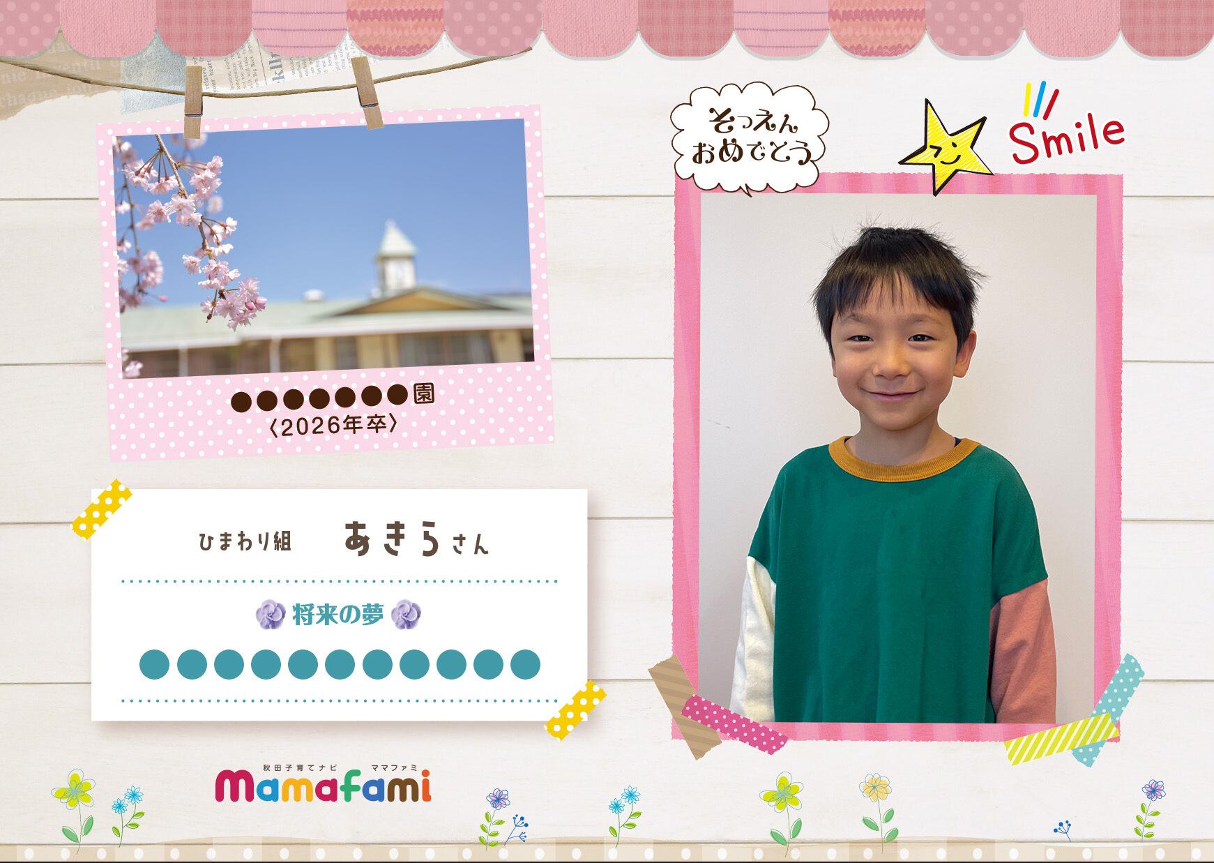 ・こちらの商品は情報誌「ママファミ 2026年卒園アルバム号」に掲載された秋田県内87園1,608名のお子様のご家族(ご関係者)さま向けの商品です