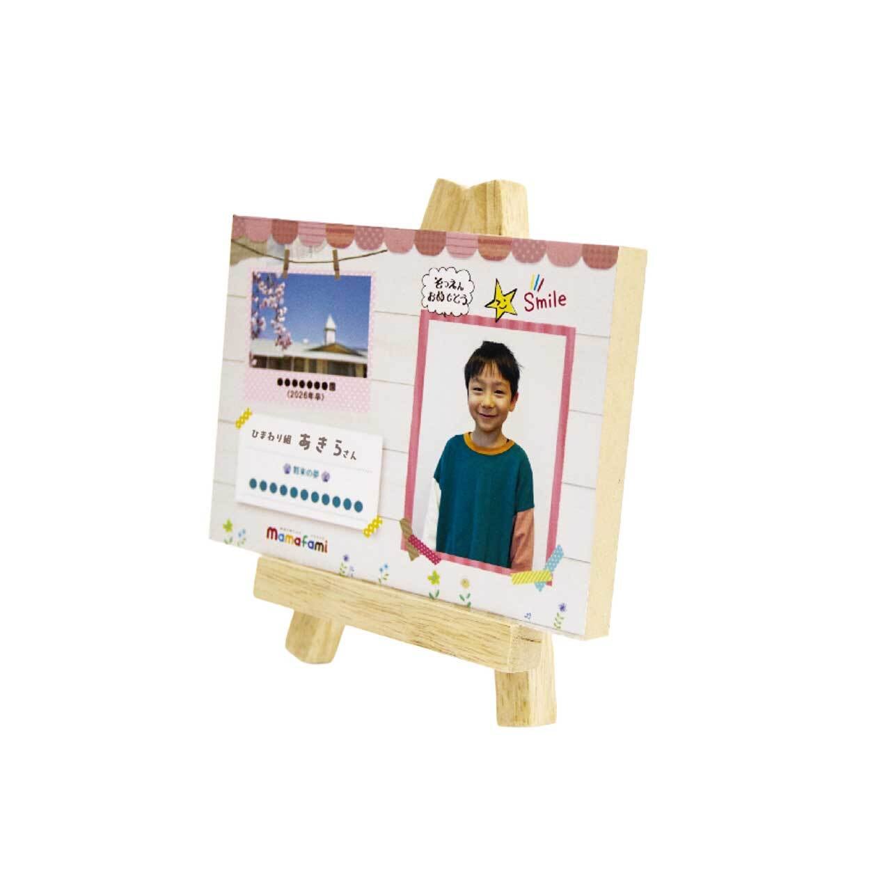 天然木の柔らかな質感に、お子さまの笑顔をそっとのせてお届けします。ナチュラル素材がインテリアにも馴染みます。「お名前(ひらがな)」「将来の夢」「園名」「組名」が入るデザイン入り。